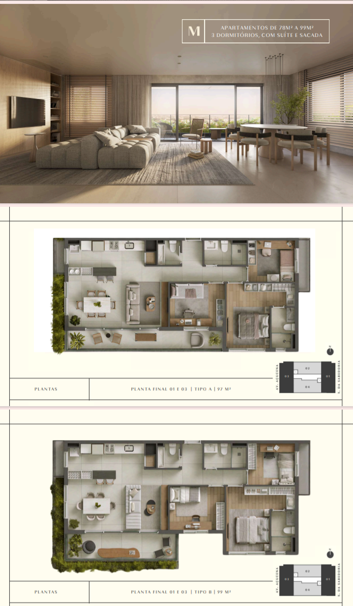 Todos os apartamentos com 3 dormitórios é suite