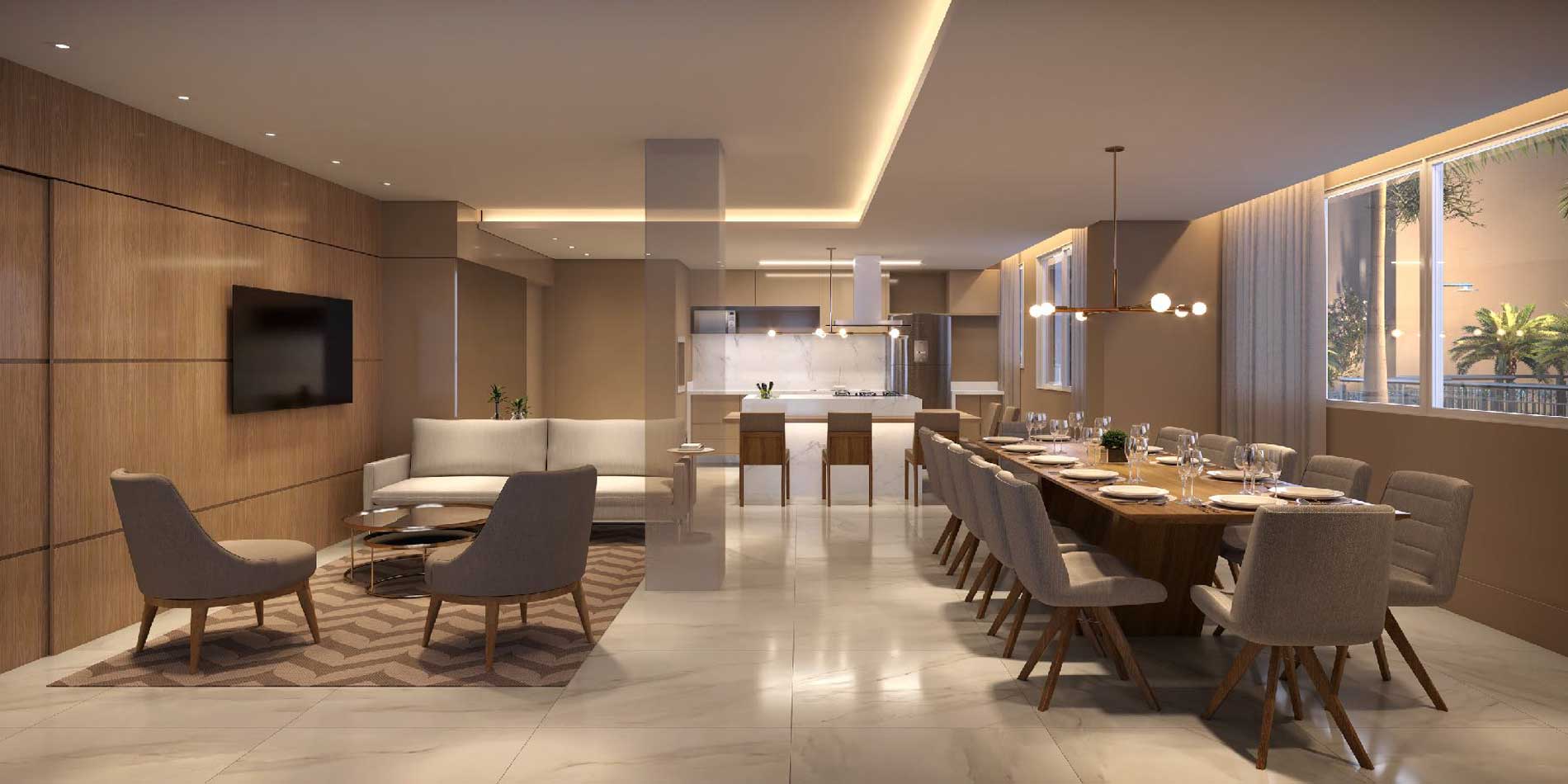 - Lounge externo: Integrado ao espaço gourmet, para momentos ao ar livre.
